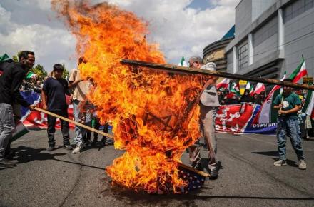 الإيرانيون يحتفلون بـ"إحراق أعلام أمريكا وإسرائيل" بعد إعلان الهدنة