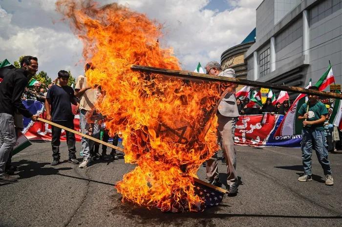 الإيرانيون يحتفلون بـ"إحراق أعلام أمريكا وإسرائيل" بعد إعلان الهدنة