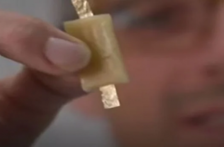 فريق المعهد الإيطالي للتكنولوجيا، صنع البطارية من مواد غذائية، إضافة إلى ورق الذهب والأعشاب البحرية، وشمع العسل لتغليف اقطاب البطارية.