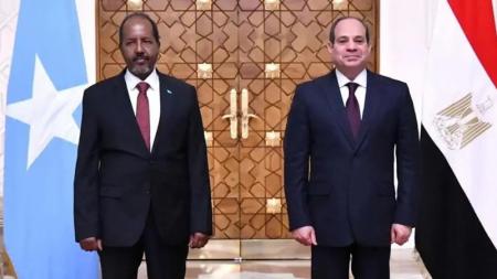 وكان الرئيس المصري قد استقبل اليوم الأحد بقصر الاتحادية، حسن شيخ محمود، رئيس الصومال لعقد مباحثات بشأن سبل تعزيز العلاقات الثنائية والأوضاع الإقليمية.