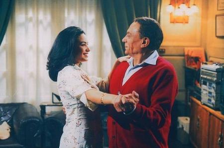 وحينما ذهبت إلى منزله من أجل لقائه، كانت تشعر بخطوات أقدامه على الدرج، قبل أن يحضر ويمازحها قائلا "يعني انتي هتحبيني أنا وابني في نفس الفيلم.. انتي مين عشان تحبيني أنا وابني".