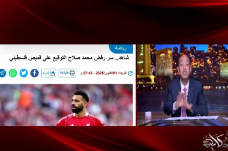 كما تحدث أديب عن الجدل الذي أثير مؤخرًا حول موقف "صلاح" قبل أحد المباريات، بشأن رفضه التوقيع على "تي شيرت" ليعلن دعمه لفلسطين، قائلًا: "القوانين الأوروبية والفيفا تمنع أي تعبير سياسي داخل الملاعب، والفانلة اللي كان ماسكها الشخص مش معروف مكتوب عليها إيه".