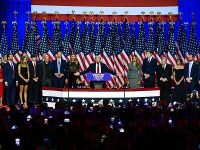 خاطب الرئيس دونالد ترامب أنصاره من مقر حملته في فلوريدا، معلنا فوزه بالانتخابات الرئاسية الأميركية. وقال ترامب بخطاب النصر: "أميركا ستدخل عصرا ذهبيا".، مضيفاً بالقول: "حققنا نصرا سيسمح بجعل أميركا...