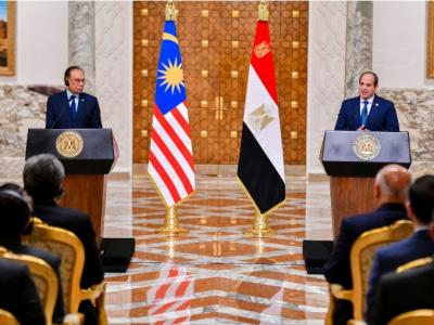 أكد الرئيس المصري عبد الفتاح السيسي، اليوم الأحد، أن هناك توافقًا كبيرًا بين مصر وماليزيا في القضايا الدولية، ومن الضروري بذل كل الجهود لوقف إطلاق النار في غزة ولبنان، وإدخال المساعدات، مشيرًا إلى أن...