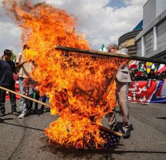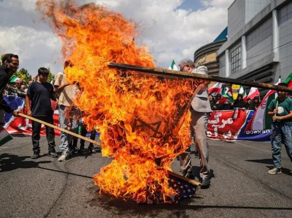 الإيرانيون يحتفلون بـ"إحراق أعلام أمريكا وإسرائيل" بعد إعلان الهدنة