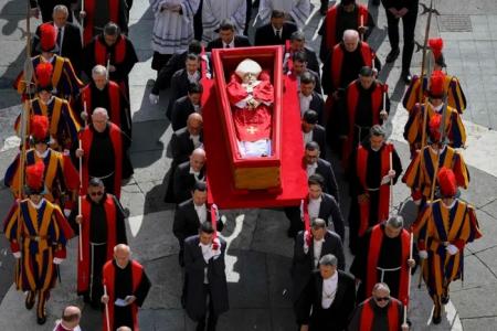 وقال مسؤولون في الفاتيكان، إن نحو 50 ألفًا توافدوا على الكاتدرائية لتوديع البابا الراحل منذ تسجية جثمانه في نعش مفتوح أمس الأربعاء قبل جنازته يوم السبت المقبل.